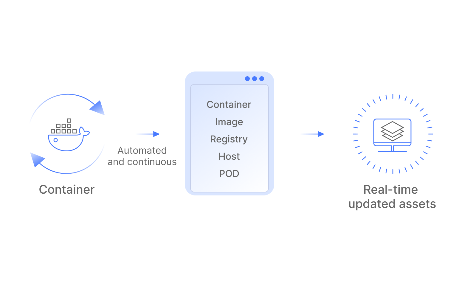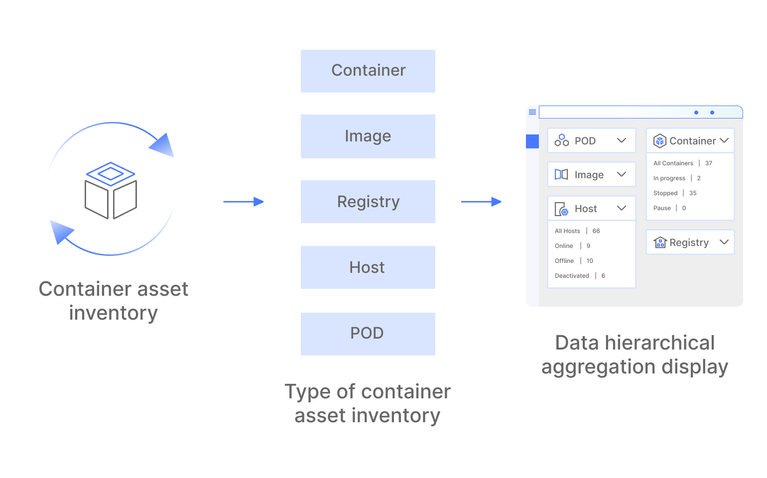 Supports quick inventory of container assets such as container, image, registry, workload, POD, etc., providing users with a categorised view of the assets in containers and achieving comprehensive visualisation of container assets.