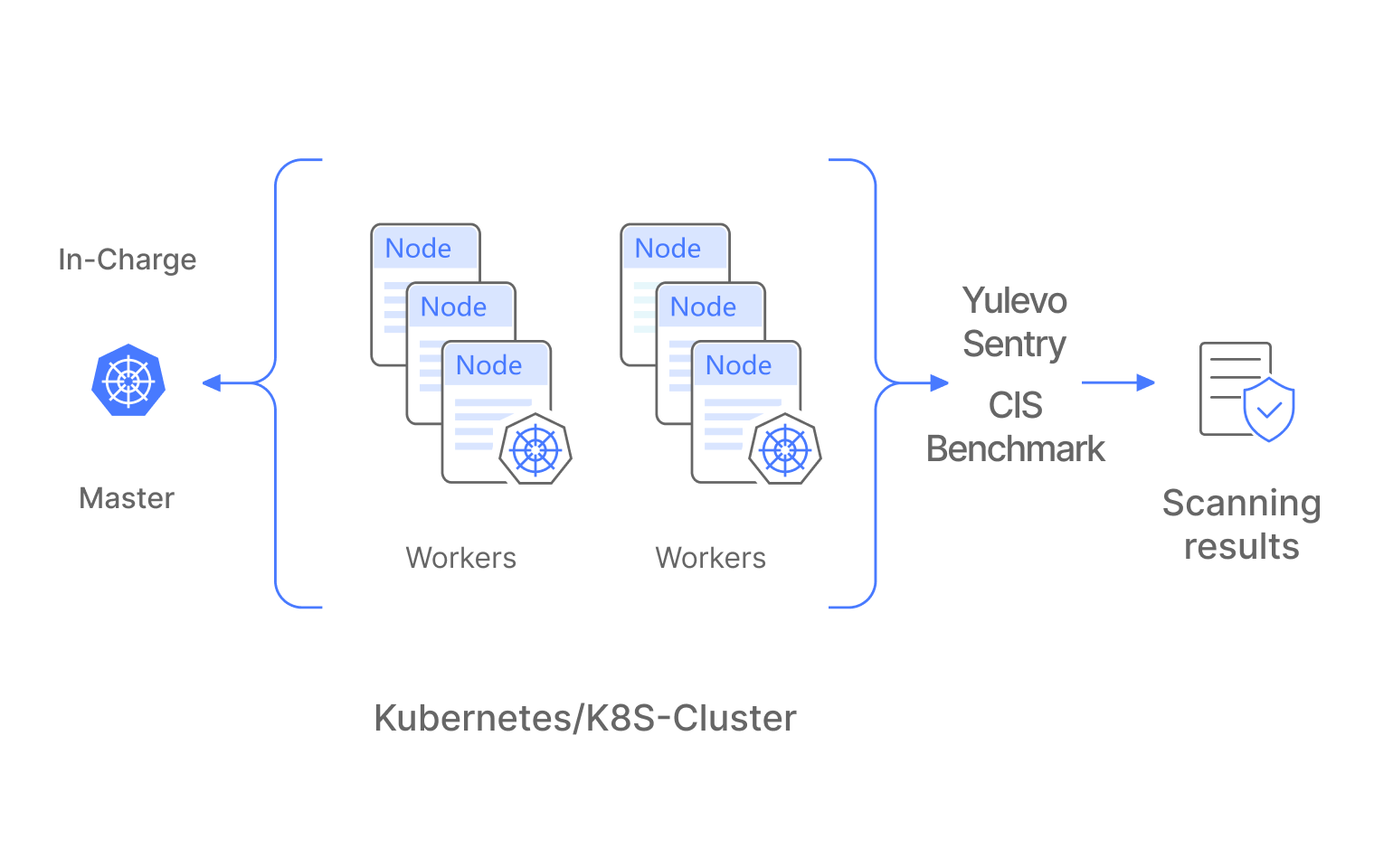 According to the specification of CIS Benchmark, baseline checking of master nodes and worker nodes of K8s is performed at regular intervals. Once the scanning is complete, you can view each scanning detail as well as the scanning results.