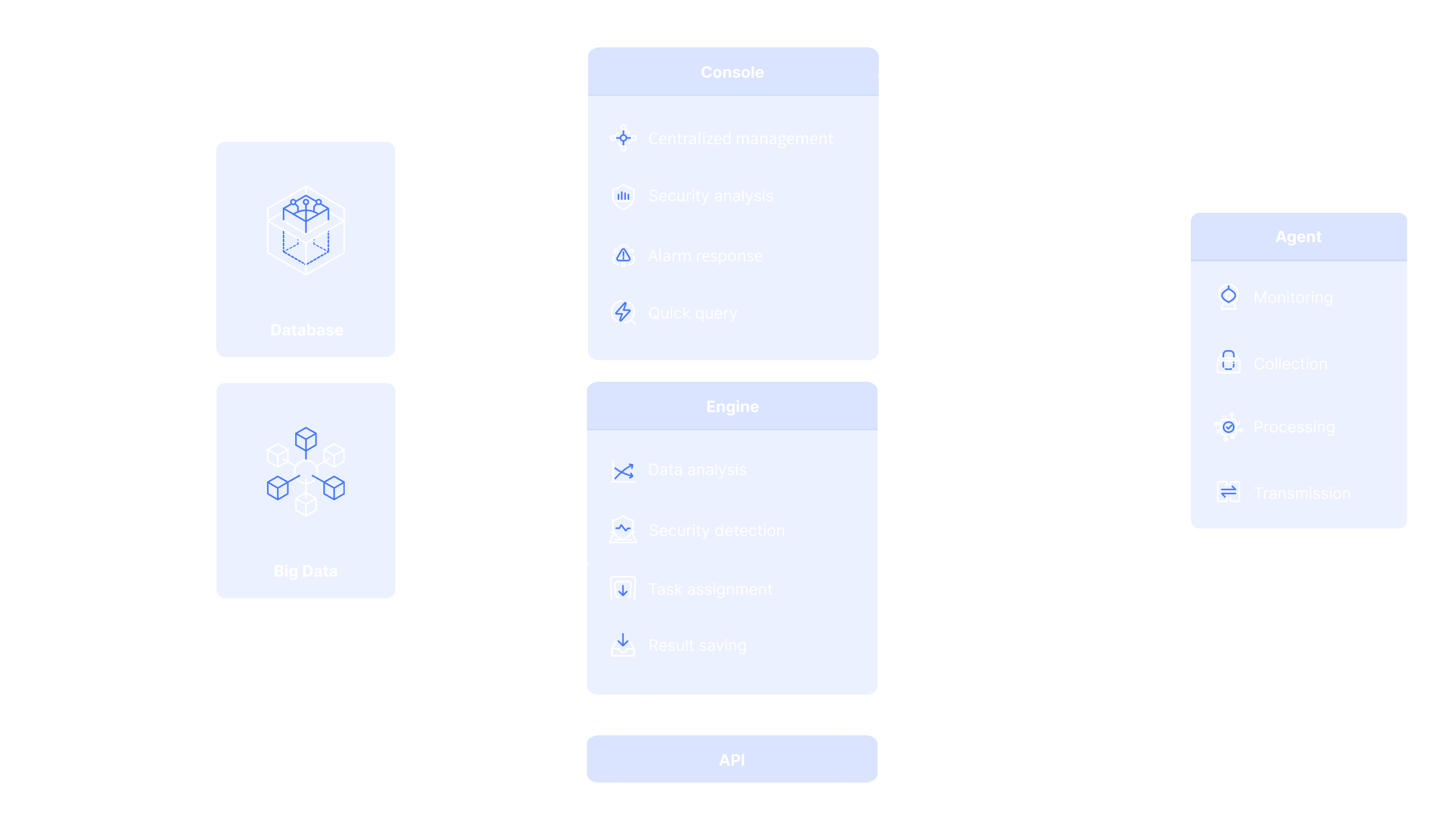 Server, as the information processing hub of the core platform, supports horizontal scaling and distributed deployment, can continuously analyse and detect the information and behaviours received from each Agent and save them. It can find security risks, such as vulnerabilities, weak passwords, etc., and anomalous behaviours, such as Webshell writing behaviours, abnormal login behaviours, abnormal network connection behaviours, abnormal command invocation, etc., from various dimensions of information, thus achieving real-time early warning of intrusion behaviours.